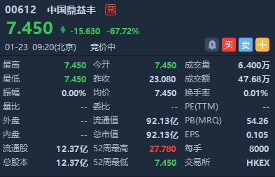 智通财经APP获悉,中国鼎益丰(00612)公布,香港证监会公布已决定将会就中国鼎益丰控股有限公司股份的涉嫌市场操控活动,对多名人士展开法律程序。香港证监会亦决定撤销其在2019年3月8日作出有关暂停中国鼎益丰股份交易的指示。该股今日复牌,截止发稿,跌67.72%,报7.45港元,成交额47.68万港元。