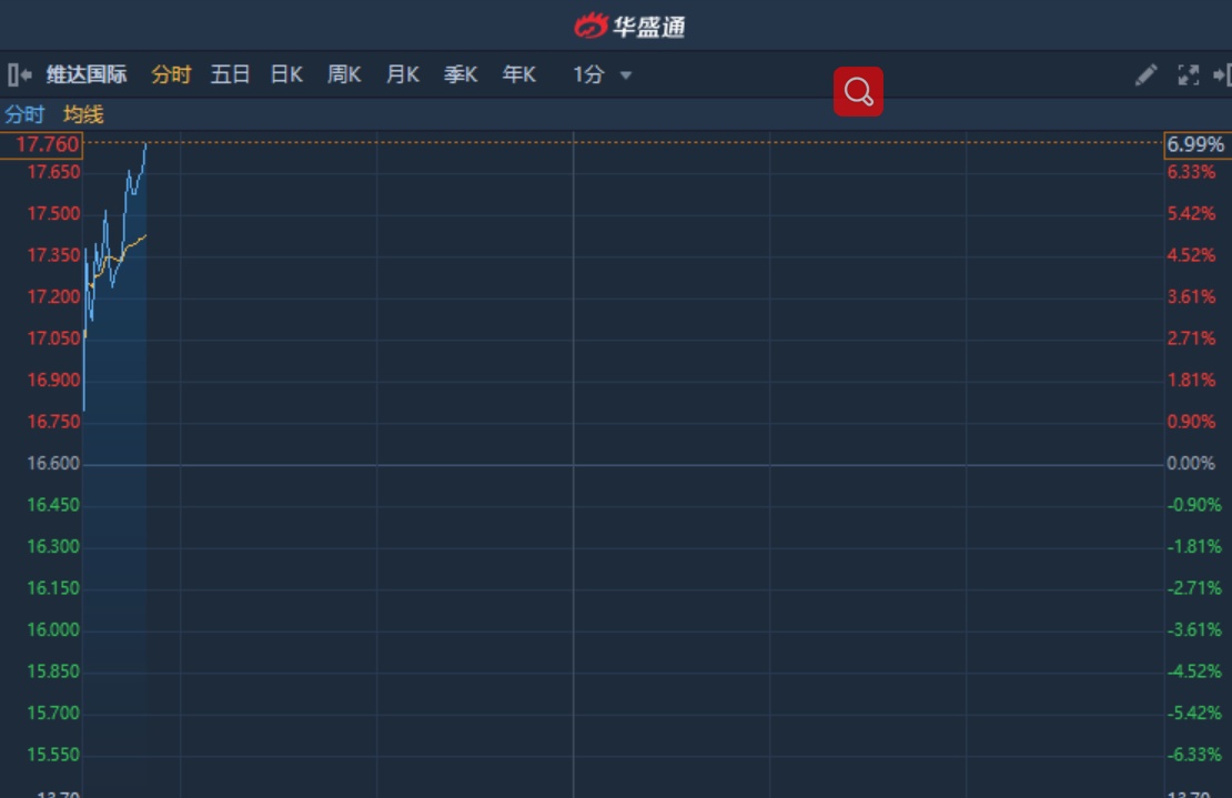智通财经APP获悉,维达国际(03331)年度业绩超预期,净利同比增加75.31%至11.38亿港元,早盘股价放量急升,截至9时48分,涨6.99%,报价17.76港元,成交额1686万。