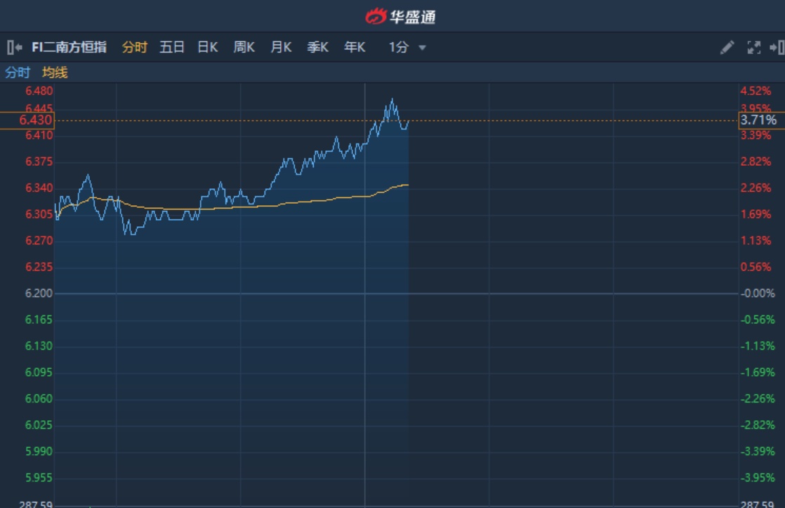 截止发稿,FI二南方恒指(07500)涨3.71%,报6.43港元。