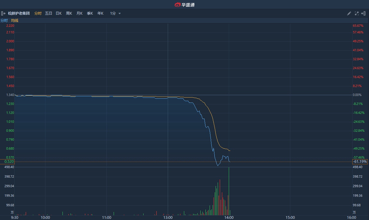 港股异动 | 松龄护老集团(01989)午后放量闪崩 盘中跌逾64%创一年新低