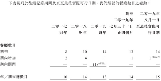 这也使得大喜屋的增长空间受到了一定限制。智通财经APP了解到,大喜屋于2017财年期末拥有10家餐厅,期间增加2家,2018财年末又增加4家至14家,然而在2019财年末不仅未新增餐厅,还关停了一家,之后虽然新店增加,但是增速较2018财年也有明显放缓,一定程度能够反应新店开设的难度在增加。