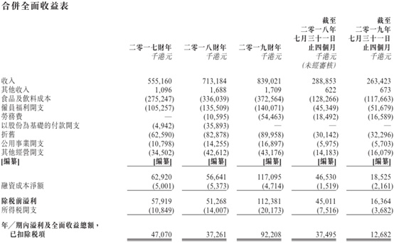 2019财年之后,大喜屋缺少新店贡献叠加香港问题,业绩已出现大幅下滑。智通财经APP了解到,公司截止2019年7月31日的四个月录得营收2.63亿元,同比下滑8.8%,净利润大幅下滑66.18%至1268.2万元,经调整过后的净利润同样大幅下滑52.03%至1824.4万元。大幅下滑的原因除了公司提及的2019年6月来的香港社会风波,开业新餐厅导致员工成本及其他经营开支增加外,分店经营数据中可知,该报告期仅有沙田新店开业和铜锣湾店营收贡献是增长外,其他店面均大幅下滑,更何况还有一家停业店的拖累。