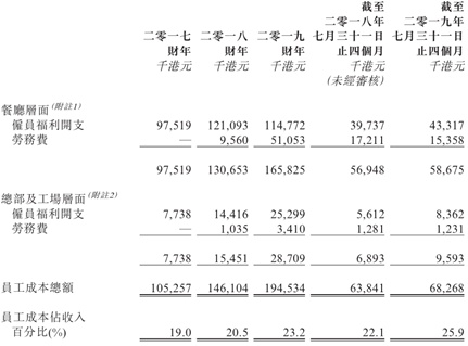 持续上涨的员工成本,还在压缩大喜屋利润水平。智通财经APP了解到,公司于2017-2019财年以及2019年7月31日止4个月的员工成本,分别为1.05亿元、1.46亿元、1.95亿元及0.68亿元,占公司收入的19.0%、20.5%、23.2%及25.9%,2017财年至2019财年的总员工成本年均复合增长率达到35.93%。而据灼识咨询报告,香港日式餐厅时薪中位数由2014年的约每小时42.5元增加至2018年的约每小时54.2元,复合年增长率为约6.3%。持续紧张的劳动力市场对香港劳动力成本施加更多压力,尤其是对服务型行业,预期香港日式餐厅市场时薪中位数在未来数年将延续上升趋势,于2023年将达到约每小时68.8港元。因此后续公司利润增速也将面临进一步的下滑。