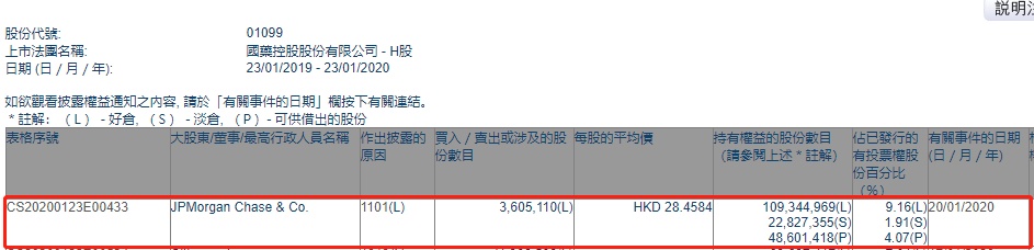智通财经APP获悉,联交所最新资料显示,1月20日,摩根大通增持国药控股(01099)360.511万股,每股作价28.4584港元,总金额约为1.03亿港元。增持后最新持股数目约为1.09亿股,最新持股比例为9.16%。