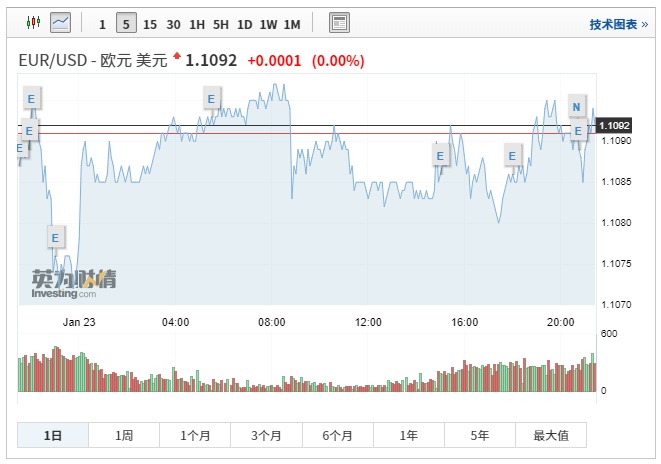 利率声明发布后,截至发稿,欧元兑美元反映平淡,交投于1.1092附近。