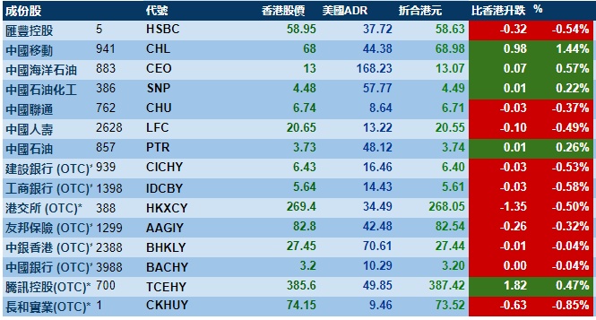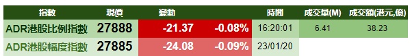 智通财经APP获悉,美股周四收盘涨跌不一,纳指创收盘历史新高。港股ADR指数小幅微跌,按比例计算,收报27888点,跌21.37点或0.08%。
