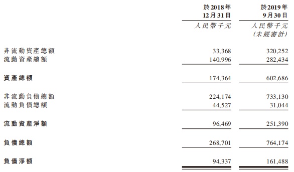 资产总额由2018年12月31日的人民币1.74亿元大幅增加至2019年9月30日的人民币6.03亿元,主要由于无形资产大幅增加所致,其进而主要原因为有关其于2019年3月收购加奇所获得的商誉及技术。