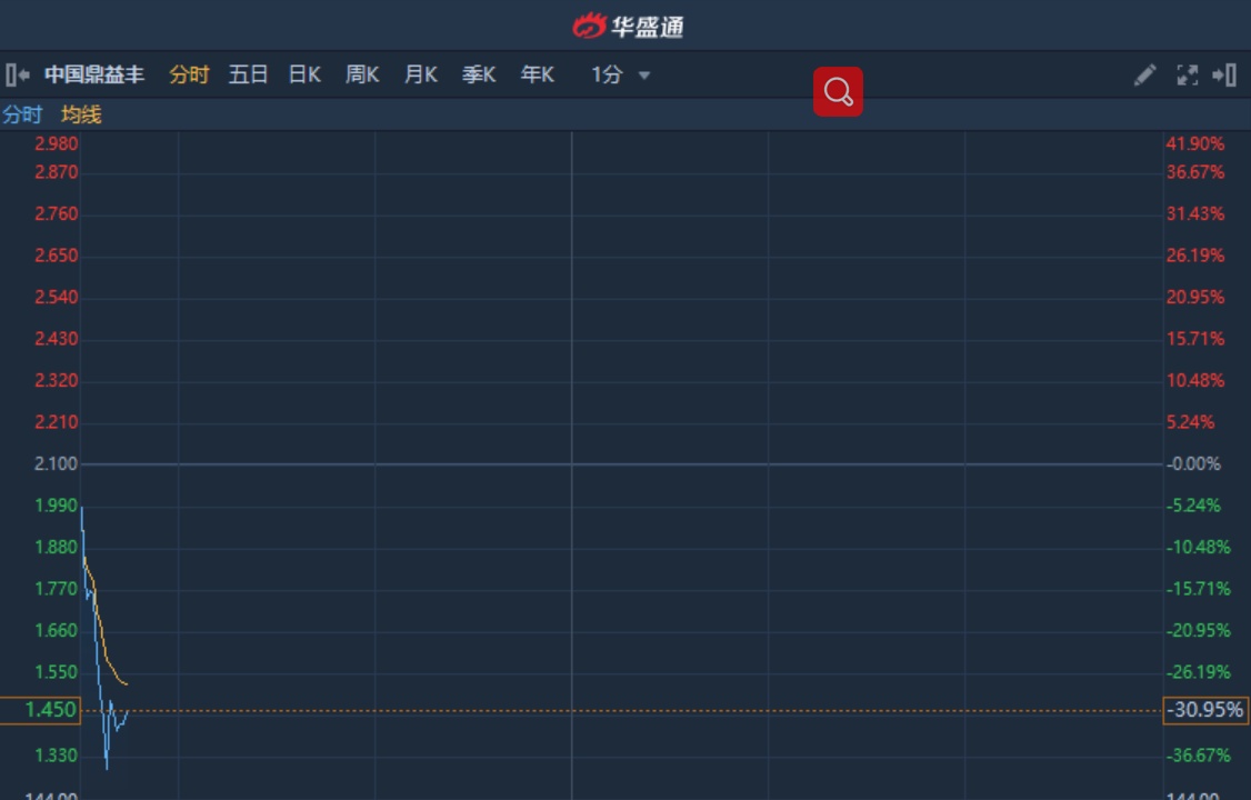 智通财经APP获悉,中国鼎益丰(00612)非执行董事隋广义辞职,香港证监会撤销暂停股份交易的指示,该股昨日复牌,股价连遭重挫。截至9时43分,跌30.48%,报价1.46港元,成交额1482万。