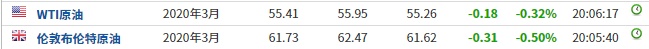 截至发稿,WTI原油跌0.32%,报55.41美元/桶。布伦特原油跌0.50%,报61.73美元/桶。