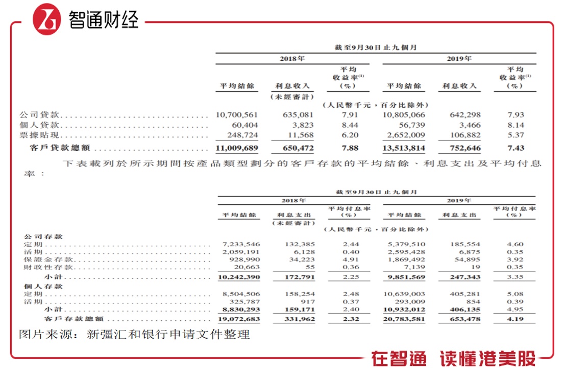 银行核心收入主要靠净利息(利息差),新彊汇和银行净利息收入往年对经营收入的贡献基本达90%。该公司平均客户贷款利率自2017年开始持续下降,2019年首九个月,客户贷款平均利率7.43%,而客户存款往年在2.7-3%区间,但2019年出现较大变化,定期的利率大幅度提升,导致整体的付息率提升。