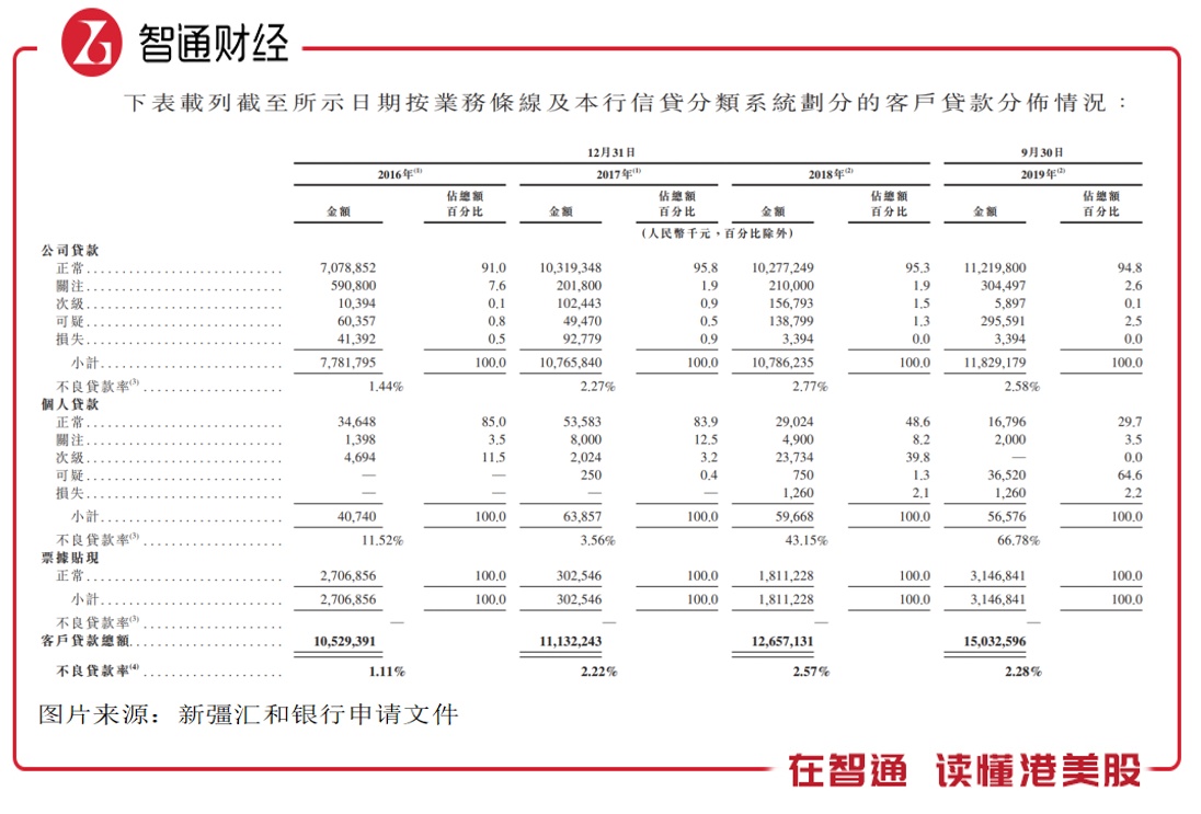 该公司向中型企业、小型企业及微型企业提供公司贷款,其中主要为微型企业,贷款金额占比持续提升,2019年首九个月提升至89.3%,这些微型企业或基本都是从事棉花生意的。根据披露,截至2019年9月30日,该公司发放棉花产业的企业及个体户的贷款占比总贷款额64.4%。