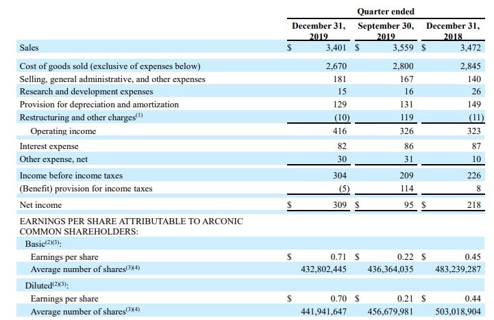 智通财经APP获悉,1月27日美股盘后,由美国铝业公司拆分出来的轻金属工程和制造公司奥科宁克公司Arconic Inc.(ARNC.US)公布了其2019年第四季度及全年财报。