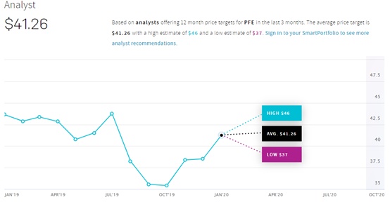 基于过去3个月包括摩根大通及摩根士丹利分析师在内的7位分析师的意见,对辉瑞的股票评级为“买入”,以及平均41.26美元的目标价。
