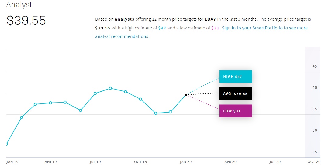 基于过去三个月内包括富国证券的分析师给出的建议,eBay的平均评级为“买入”,平均目标价为39.55美元。