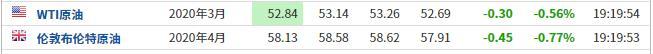 截至发稿,WTI原油跌0.56%,报52.84美元/桶。布伦特原油跌0.77%,报58.13美元/桶。