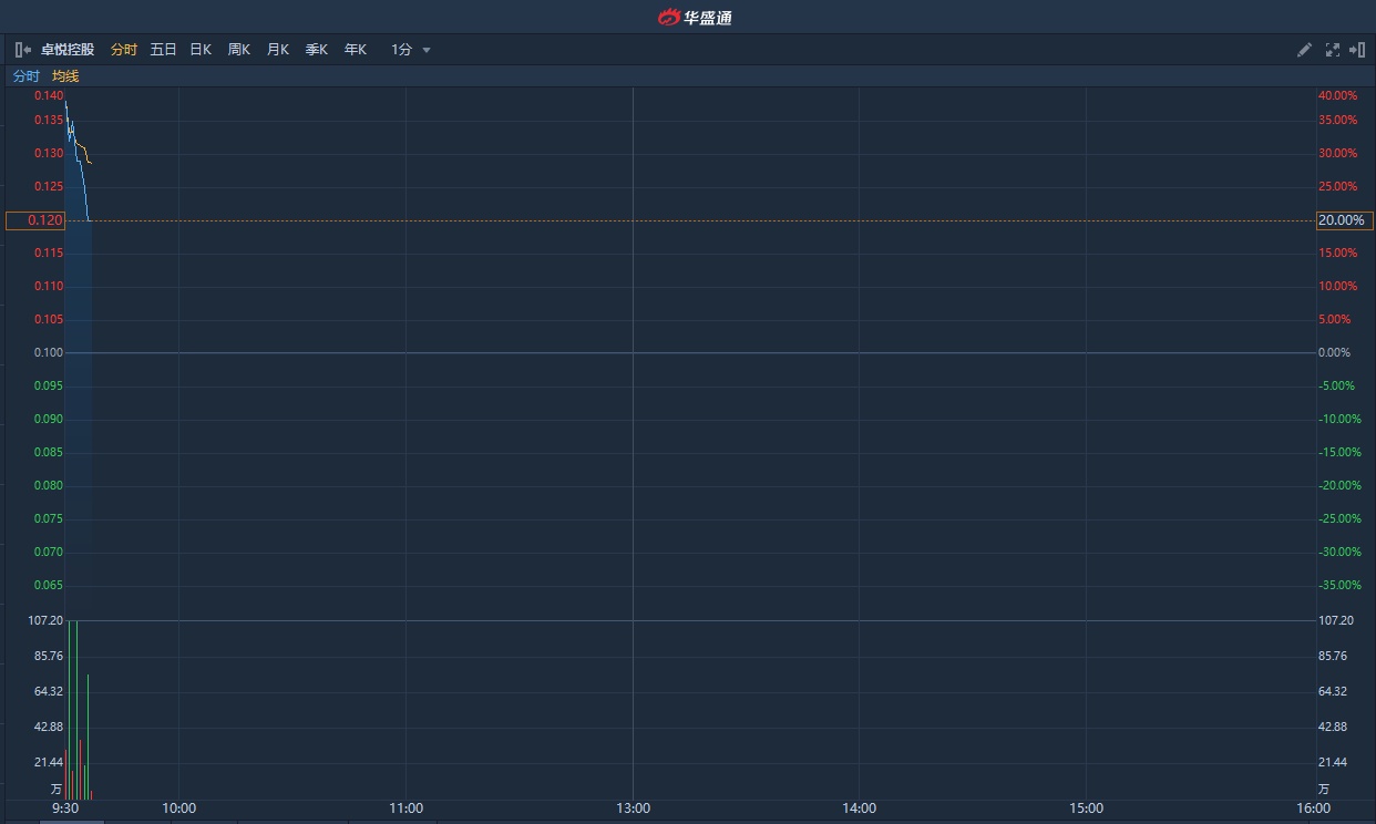 智通财经APP获悉,卓悦控股(00653)发布公告,公司执行董事及主要股东陈健文拟向控股股东购买其全部或部分股份,合共涉及该公布日期的已发行股份总数约40.4%。潜在交易或会导致潜在买方将须提出强制性全面要约。该股今日复牌高开38%,截至发稿,涨20%,报0.12港元,成交额51.25万港元。