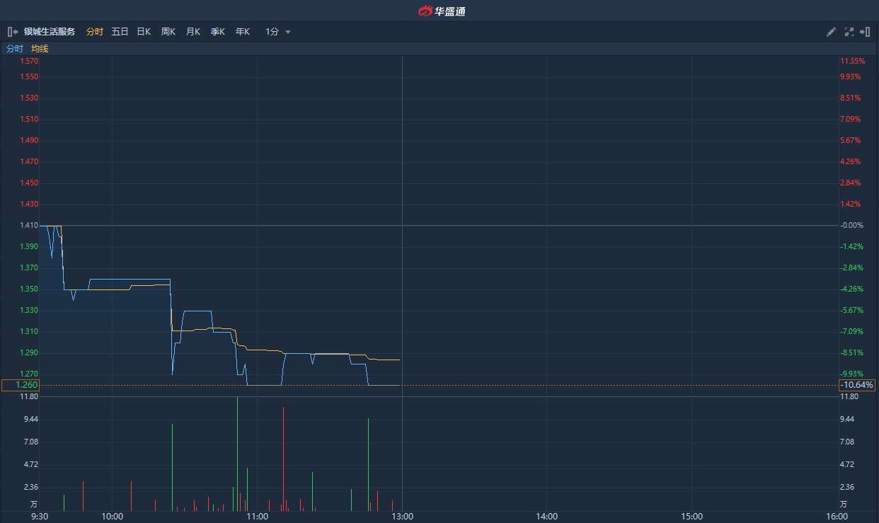 港股异动 | 银城生活服务(01922)跌逾10%创上市新低 较招股价低四成