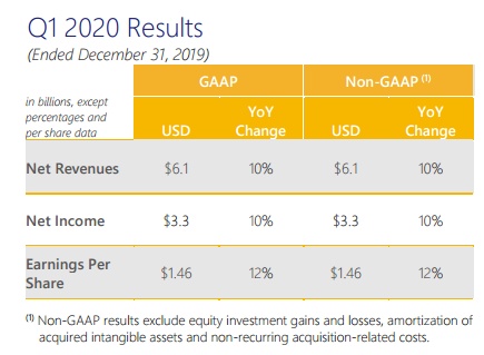 智通财经了解到,董事会批准了一项新的95亿美元的股份回购计划,并重申2020财年的指导方针(均以调整后的固定美元汇率为基础),即:低两位数的年度净收入增长、中高个位数的年度运营费用增长、以及A级普通股年度摊薄每股收益两位数增长。