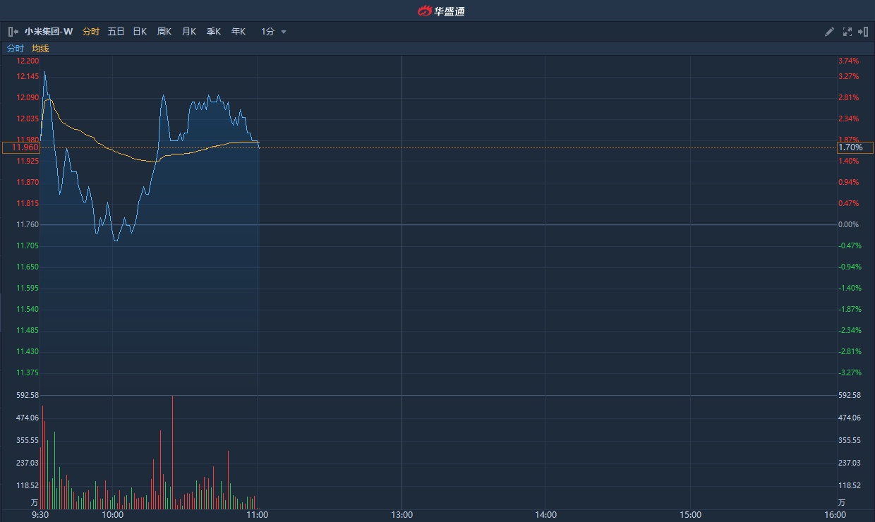 智通财经APP获悉,市场调研机构Canalys近日发布印度智能手机市场报告。其中,小米(01810)在第四季度引领市场,出货量增长13%至1,120万台,保持第三季度的稳定销售水平;市占率29%,连续第10个季度雄踞市场榜首位置。小米全年出货量为4290万部。小米集团盘中涨逾3%,截止发稿,涨1.87%,报11.98港元,成交额12.79亿港元。