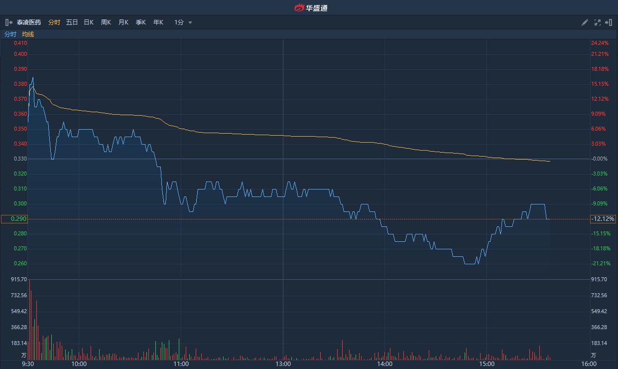 智通财经APP获悉,泰凌医药(01011)近日发布公告,称旗下药物或可用于肺炎。该股于1月29日收涨52%,30日高开64%,此后股价持续下跌,今日早盘高开后继续下跌,盘中一度跌超20%。截止发稿,跌12.12%,报0.29港元,成交额5724.92万港元。