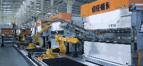 睿住优卡工厂内,库卡机器人24小时来回忙碌