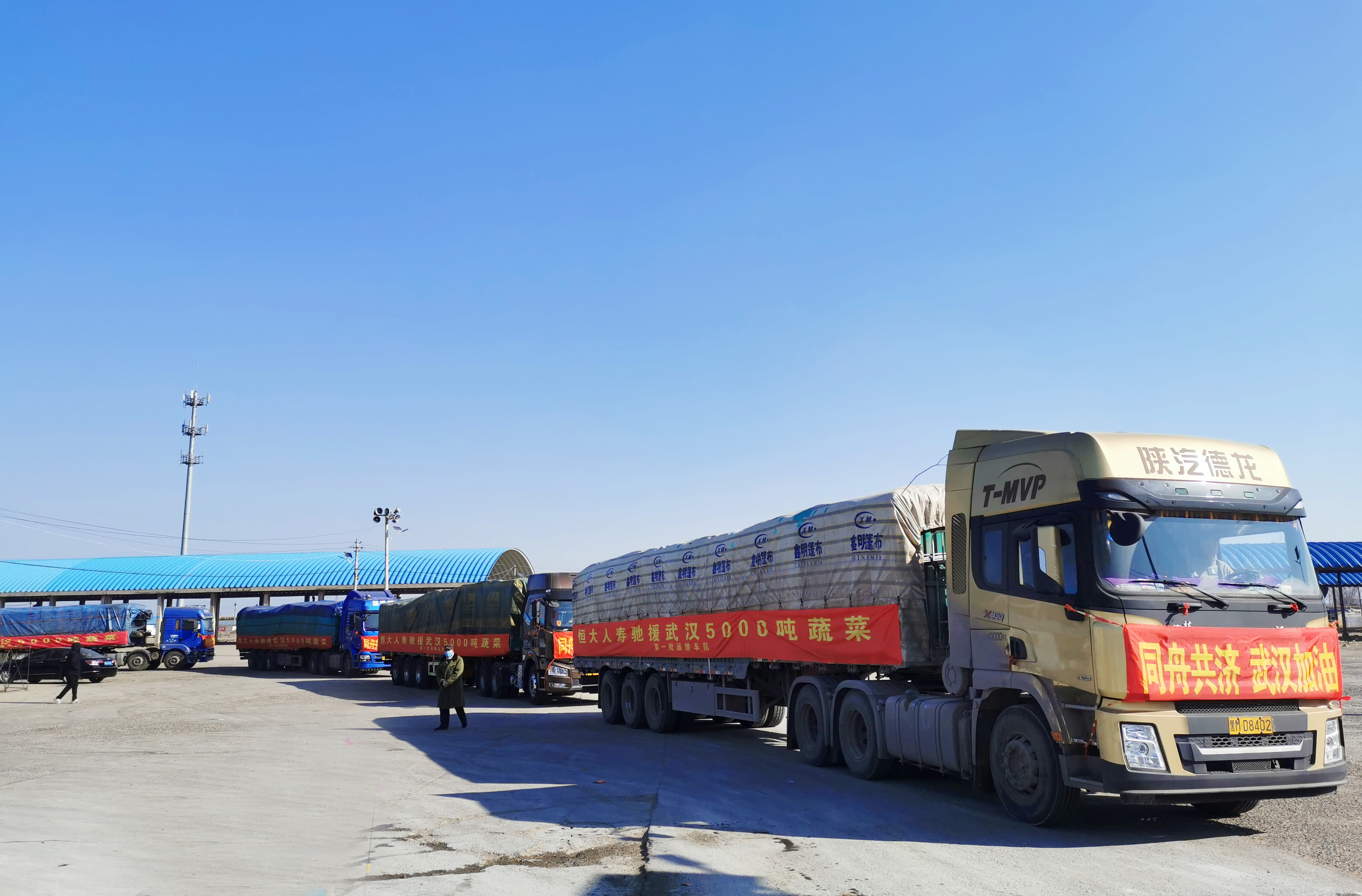 恒大人寿驰援武汉5000吨蔬菜第一批运输车队