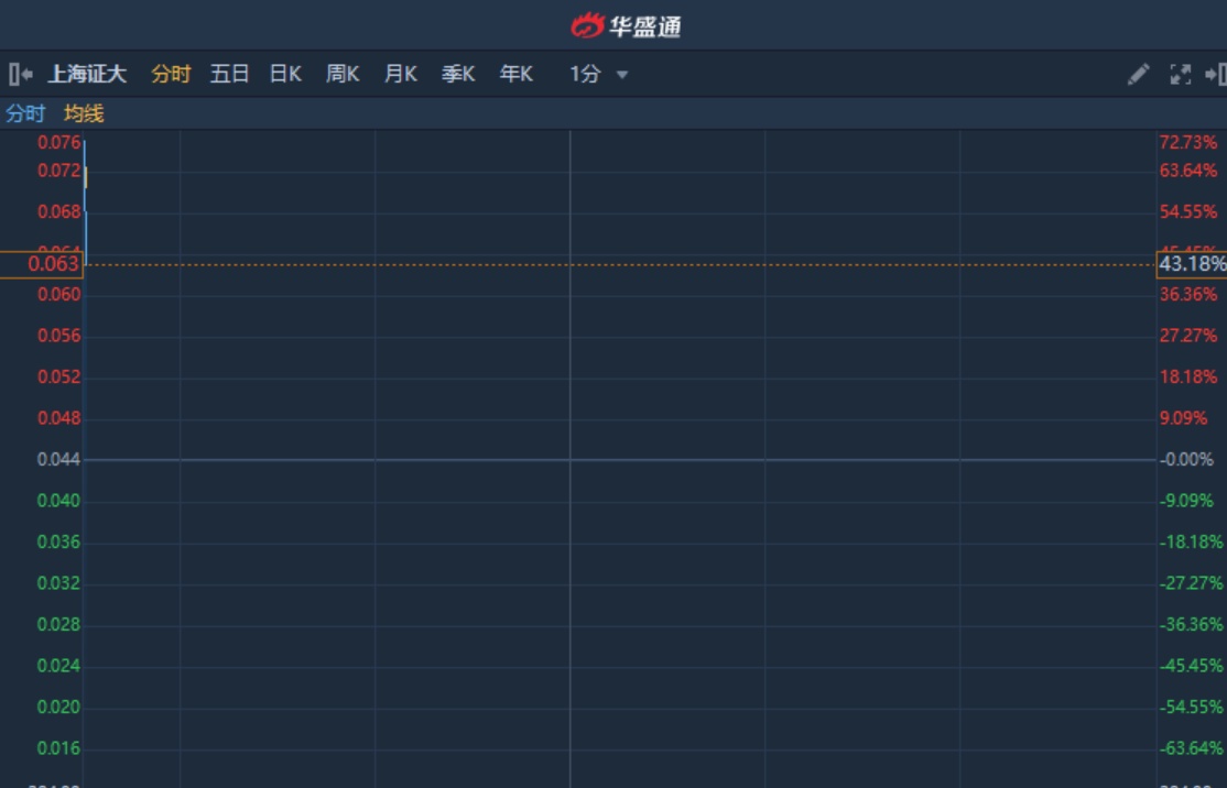 智通财经APP获悉,上海证大(00755)昨日晚间公告称,拟出售海门证大滨江置业有限公司,最低投标价为15.83亿人民币,早盘股价大幅高开,截至9时30分,涨59.09%,报价0.07港元,成交额33.47万。