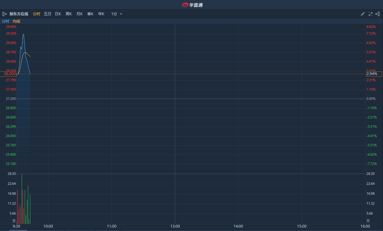 智通财经APP获悉,1月27日,教育部下发2020年春季学期延期开学的通知。在各省市教育主管部门规定中,宣布暂停各类校外培训机构所有线下课程和集体活动。各地教育部门也为服务保障防控疫情期间中小学校 “停课不停教、不停学”做了大量工作。受消息影响,新东方在线(01797)一度涨逾7%,股价刷新历史新高。截止发稿,涨3.13%,报28.05港元,成交额5180.98万港元。