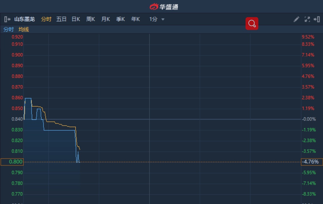 智通财经APP获悉,山东墨龙(00568)发盈警,2019年度归属股东净亏损预计约1.7亿至2.1亿人民币,截至10时36分,跌4.76%,报价0.8港元,成交额79.32万。