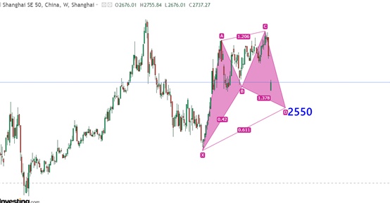 上证50今天跳空下跌,下一个支持位在2550点,正如笔者所讲,2月可能出现短暂性转势,所以股市有机会在2636或2550点之前出现一个反弹。