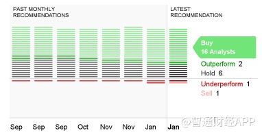 据统计,26位投资分析师中,16位分析师给予公司“买入”评级,2位分析师给予“跑赢大市”评级,6位分析师给予“持有”评级,而给予“跑输大市”及“卖出”评级的分析师各有1位。