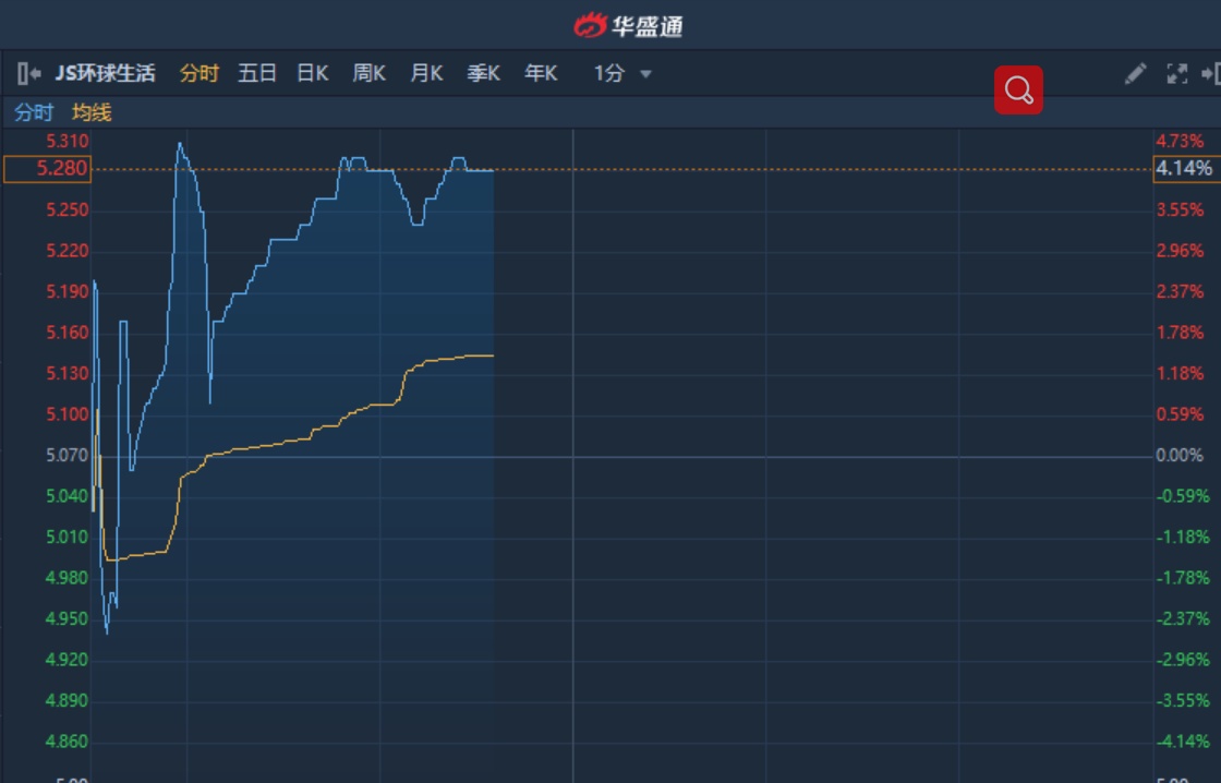 智通财经APP获悉,JS环球生活(01691)获瑞信首予“跑赢大市”评级,目标价9.8港元,截至11时26分,涨4.14%,报价5.28港元,成交额138.8万。