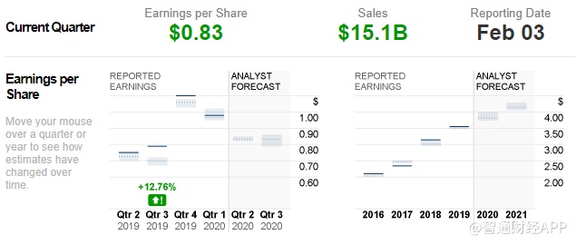 市场普遍预计该公司Q2营收为151亿美元,同比增长2.3%;预计每股收益为0.83美元,同比增涨11%。在过去两年的时间里,公司营收超预期占比达38%,每股收益超预期的占比为88%。此外,过去3个月内,公司的每股收益预估上调了4次,下调了3次。营收预估向上修正0次,向下修正8次。
