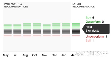 据统计,14位投资分析师中,6位分析师给予公司“买入”评级,6位分析师给予“持有”评级,而给予“跑输大市”及“卖出”评级的分析师各有1位。