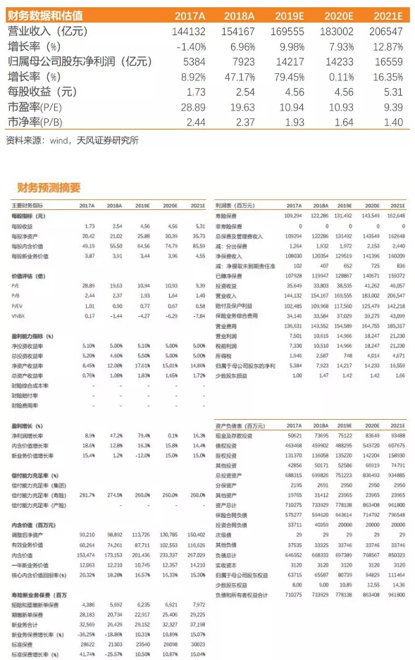 投资建议:预计短期将抑制公司2020年1季度保单销售,但全年公司NBV有望在代理人数量增长+费用政策放松下迎来改善,我们预计公司2019年、2020年的NBV增速分别为-12%、+9%。目前公司估值处于历史低位,对应2020PEV仅0.65倍,风险收益比较高,维持“买入”评级。