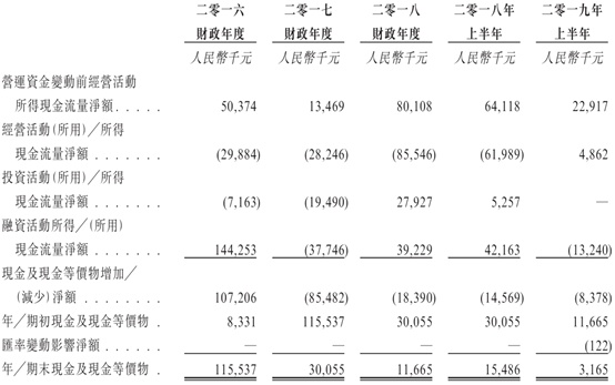 利润表现不佳的新石文化,现金流方面同样吃紧。据悉,因制作及投资供授出许可的电视剧资本要求较高,再加上贸易应收款项收款缓慢和存货周转日数长,2016-2018财年经营活动现金流出净额分别为2988.4万元、2824.6万元及8554.6万元,公司在融资成本连年大幅上涨的基础上,截止2019年上半年末的在手现金仅剩316.5万元。