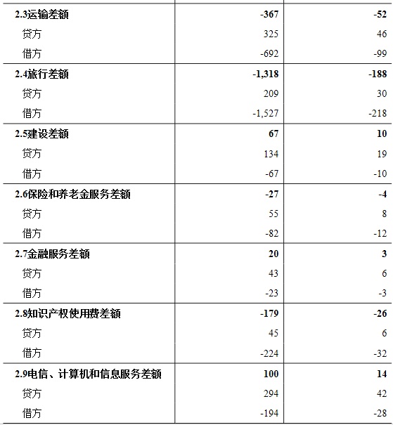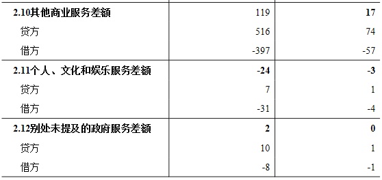 2019年12月,我国国际收支口径的国际货物和服务贸易收入18127亿元,支出16140亿元,顺差1987亿元。其中,货物贸易收入16303亿元,支出12854亿元,顺差3450亿元;服务贸易收入1824亿元,支出3286亿元,逆差1463亿元。