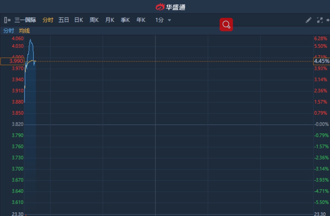 智通财经APP获悉,三一国际(00631)发盈喜,年度净利润同比预大幅增长,早盘股价急升,截至9时41分,涨4.45%,报价3.99港元,成交额372万。