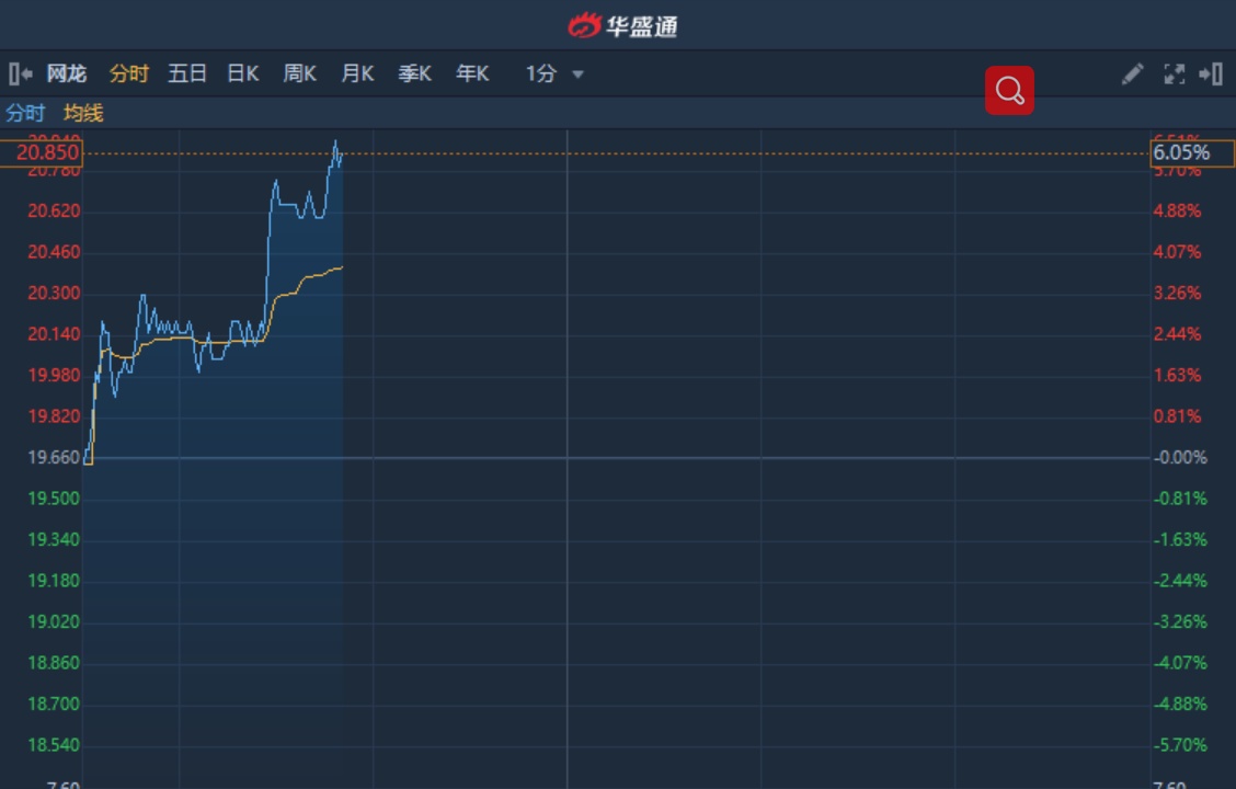 智通财经APP获悉,网龙(00777)延续升势,暂现三连阴累计涨幅超10%,盘中收复多条均线,截至10时49分,涨6.05%,报价20.85港元,成交额1824万。
