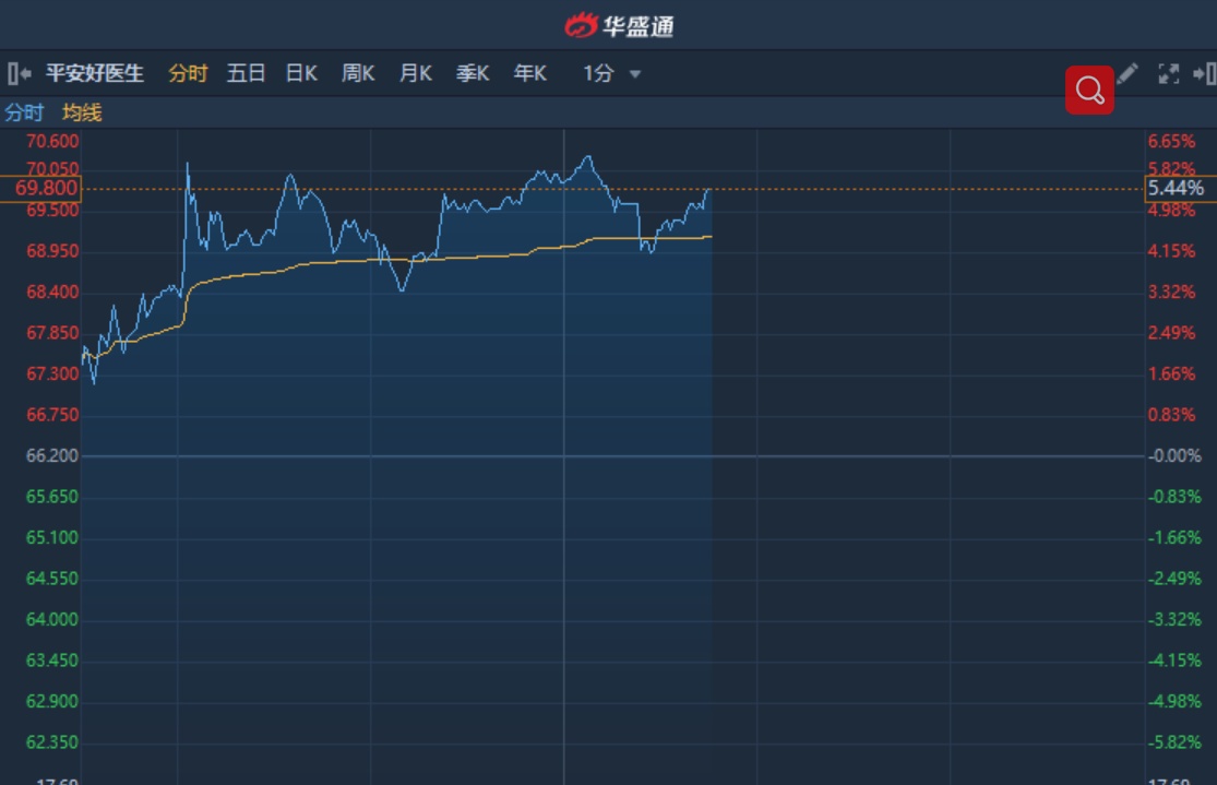 智通财经APP获悉,平安好医生(01833)将于本月11日披露年度业绩,该股盘中放量上扬逾5%,截至13时45分,涨5.44%,报价69.8港元,成交额2.699亿。值得注意的是,该股年初至今累计涨幅超23%。