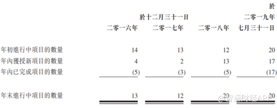 于往绩记录期内,澳达已完成30个项目。在2019年年7月31日,公司有20个正在进行的项目(正在进行或尚未开工)。在2019年7月31日后及直至最后实际可行日期,公司并无完成任何其他项目及已获授的两个新项目。