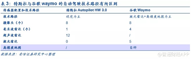 特斯拉自动驾驶的独门秘籍之三:可量产的技术路径。全球范围来看,自动驾驶的技术路线主要是以谷歌Waymo为代表的“激光雷达+高精度地图”技术路线以及特斯拉独树一帜的“以视觉传感器为主”的技术路线。马斯克坚信“ 第一性原理 ”在自动驾驶领域同样适用,即人只靠视觉就能够驾驶,自动驾驶车辆也一样。尽管业界对于视觉为主的技术路线仍然存在争议,但有一点不可否认,相对于昂贵的激光雷达,视觉为主的技术路线无疑更适用于商业化。