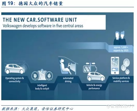 大众集团CEO:“传统汽车制造商的时代已经结束”。特斯拉在智能汽车时代的一骑绝尘深深触动着传统车厂,近期大众汽车集团(Volkswagen)CEO赫伯特·迪斯(Herbert Diess)在内部讲话中曾发表这样的评论:“汽车会成为最重要的移动设备,我们(大众)还被评估为一个汽车企业,而特斯拉已经是一个科技企业了。属于传统汽车制造商的时代,已经结束了。” 赫伯特·迪斯担心,随着汽车演变成为“车轮上的iPhone”,大众将成为下一个诺基亚。上述评论这绝不仅是口头上对于特斯拉的恭维,事实上,大众集团的转型已经全面开始落实。2019年6月20日,大众汽车官宣,其正式成立“Car.Software”车载软件开发部门,预计到2025年,该部门的人员将扩充至5000人,他们的主要任务是提升大众车载软件自研比例从10%至60%以上,全面主导汽车从机械产品往电子产品的属性变更。大众预计,软件将占未来汽车创新的90%,到2030年软件开发将占开发成本的一半。