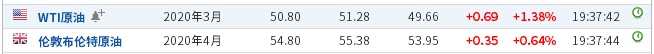 截止发稿,WTI原油涨1.38%,报50.80美元/桶。布伦特原油涨0.64%,报54.80美元/桶。