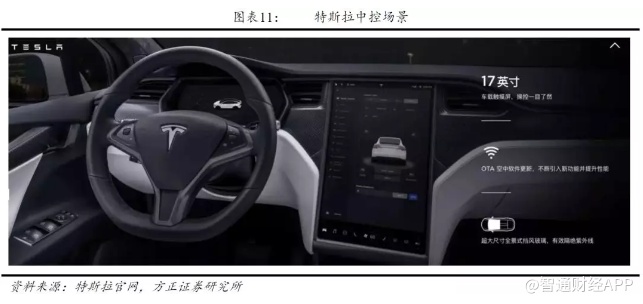 4、显示器面板是特斯拉的“触觉”。中控显示屏平均达17寸,高于燃油车8寸的平均尺寸,为市场平均应用尺寸面积的4倍以上。汽车的电子化应用趋势将带动LCD车载屏的面积增长需求。