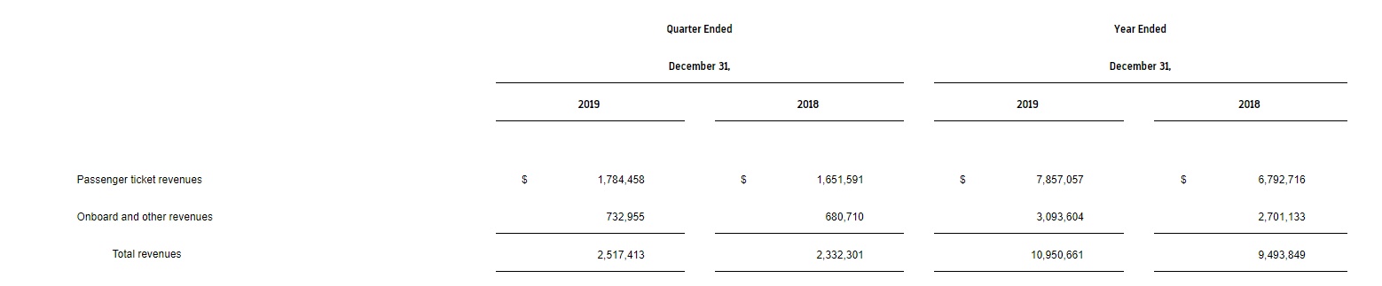 皇家加勒比邮轮全年的营收为109.5亿美元,同比增长15%。其中船票的营收为78.57亿美元,船上增长服务的营收为30.9亿美元。