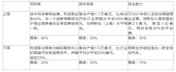 3、毛利率、资本效率、自主能力三个因素决定特斯拉估值模型