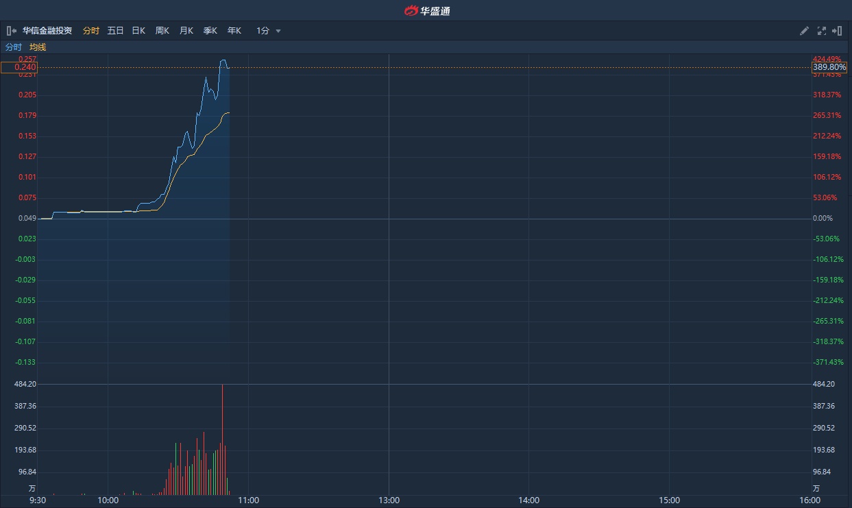 港股异动 | 细价股华信金融投资(01520)盘中突然飙升 现涨逾400%居涨幅榜首
