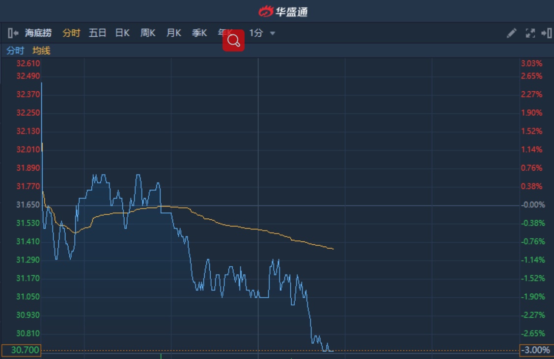 港股异动︱海底捞(06862)结束三连阳 午后挫逾3%跌破10日均线