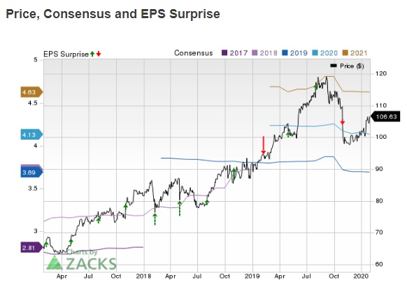 在过去的四个季度中,该公司的每股收益两次超过市场普遍预期。
